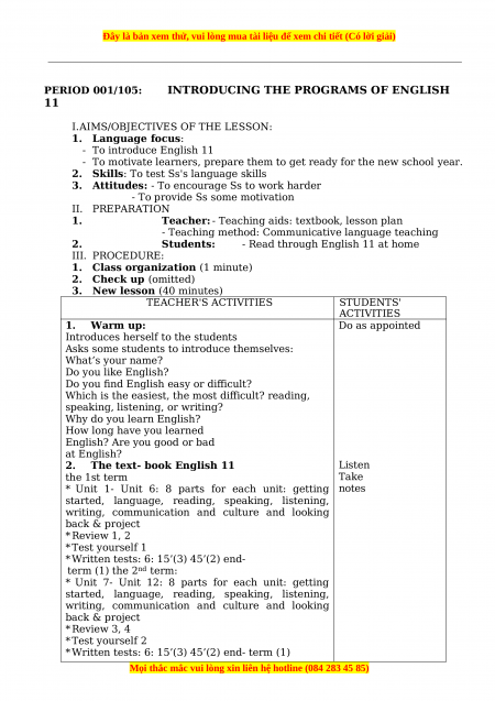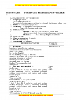 I.AIMS/OBJECTIVES OF THE LESSON: 1. Language focus: - To introduce English 11