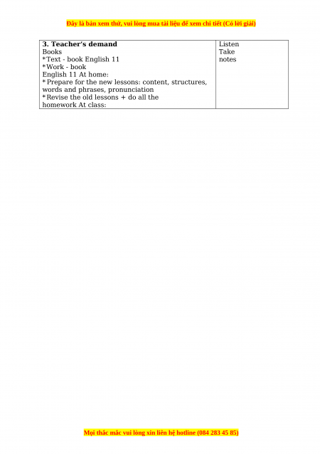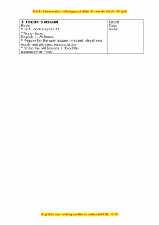 3. Teacher’s demand Listen Books Take * Text - book English 11 notes * Work - book English 11 At home: