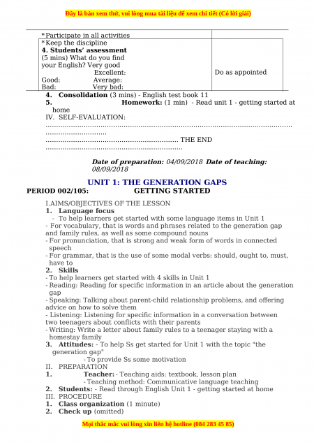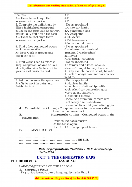 3. Attitudes: - To help Ss get started for Unit 1 with the topic "the generation gap"