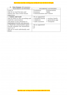 3. New lesson (40 minutes) TEACHER'S ACTIVITIES STUDENTS' ACTIVITIES 1. Warm up: Do as appointed