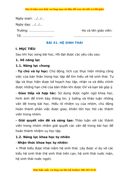 BÀI 41. HỆ SINH THÁI I. MỤC TIÊU