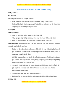 - Giải quyết vấn đề toán học: sử dụng các tính chất, khái niệm của hệ SỐ góc để