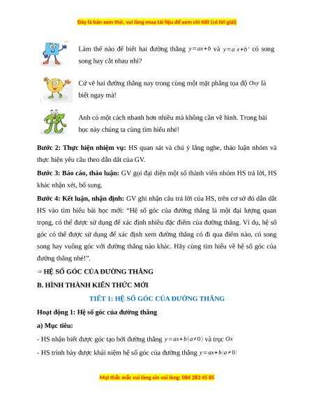 - HS trình bày được khái niệm hệ số góc của đường thẳng y=ax+b (a≠ 0)