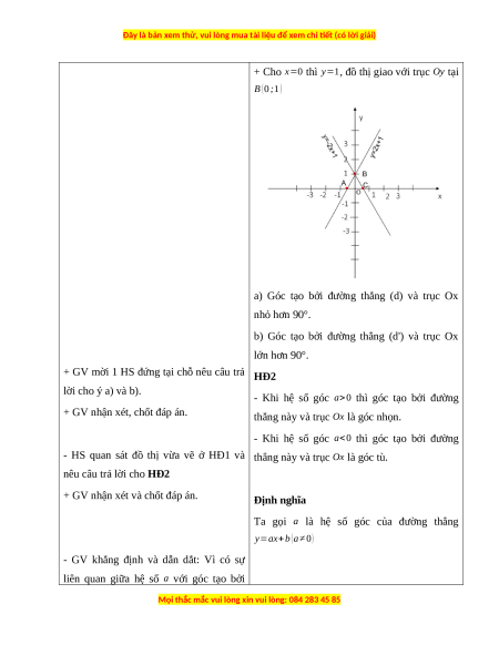 Hoạt động 1: Hệ số góc của đường thẳng a) Mục tiêu: