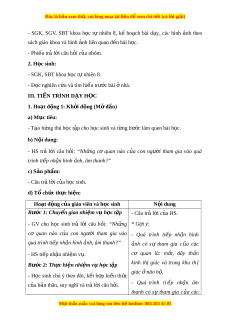 ủ giáo viên và h c s ọ inh N i ộ dung Bư c ớ 1: Chuy n gi ể ao nhi m ệ v h ụ c t ọ p ậ - Câu trả l i ờ c a ủ HS. - GV cho h c ọ sinh trả l i ờ câu h i ỏ : “Nh ng ữ * G i ợ ý: cơ quan nào c a ủ con ngư i