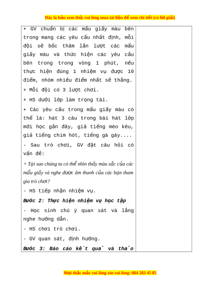 Đây là bản xem th , vu ử i lòng mua tài li u ệ đ xe ể m chi ti t (c ế ó l i ờ gi i ả ) + GV chu n ẩ bị các m u ẩ gi y ấ màu bên trong mang các yêu c u ầ nh t ấ đ nh, ị m i ỗ đội sẽ b c ố thăm l n ầ lư t ợ các m u ẩ giấy màu và th c ứ hi n ệ các yêu c u ầ