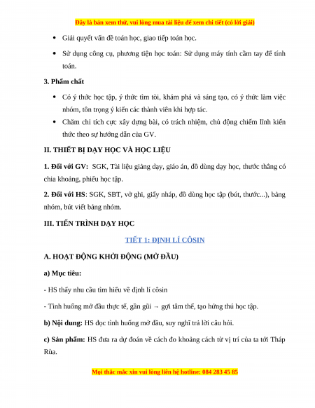 TIẾT 1: ĐỊNH LÍ CÔSIN