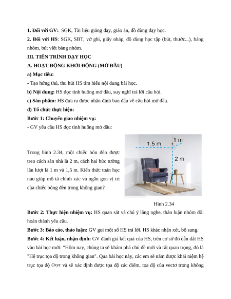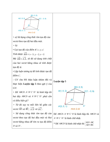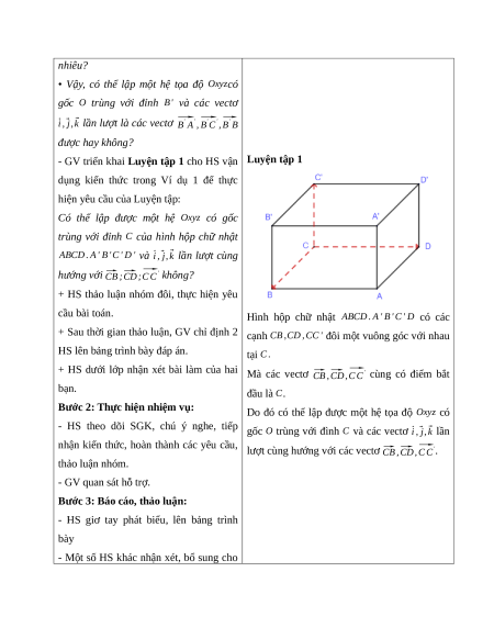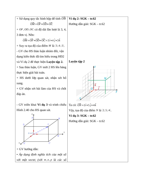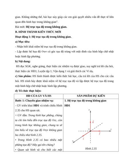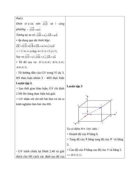 - Lập được hệ họa độ Oxyz có góc tọa độ trùng với một đỉnh của hình hộp chữ nhật hoặc hình lập phương. b) Nội dung:
