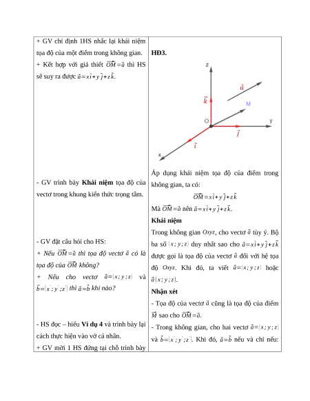 + GV chính xác hóa câu trả lời bằng Gọi ⃗i,⃗j,⃗k lần lượt là các vectơ đơn vị trên các