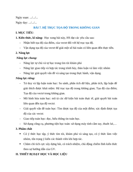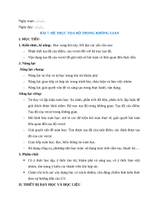 BÀI 7. HỆ TRỤC TỌA ĐỘ TRONG KHÔNG GIAN I. MỤC TIÊU: