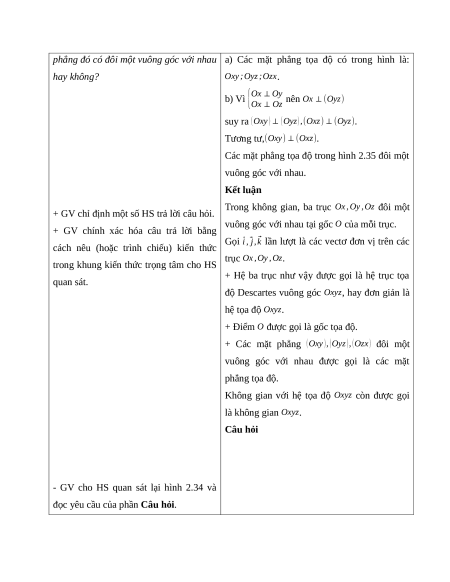 Các mặt phẳng tọa độ trong hình 2.35 đôi một vuông góc với nhau. Kết luận