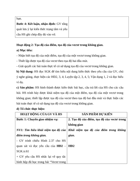 - Giải quyết vấn đề toán học: Tìm được tọa độ của một điểm; xác định được tọa độ của các vectơ.