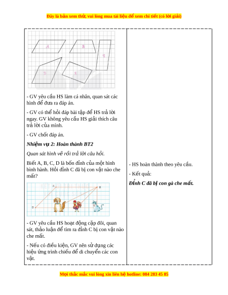 ế hình bình hành thông qua hình tr c quan; ự đ c ặ đi m ể v c ề nh ạ c a hì ủ nh bình hành. b. Cách th c t ứ i n hành ế Nhi m ệ v 1