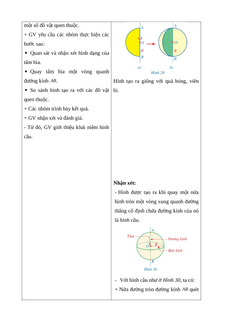 - Từ đó, GV giới thiệu khái niệm hình cầu. Nhận xét: