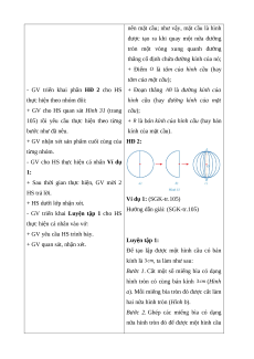 hỏi, HS nắm được khái niệm tâm, bán kính của hình cầu, tạo lập được hình cầu, mặt