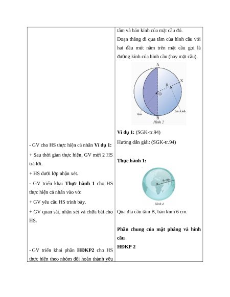 - HS mô tả được tâm, bán kính của hình cầu, tạo lập được hình cầu, mặt cầu.