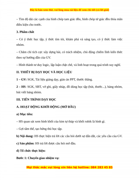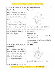 – Tìm độ dài các cạnh của hình chóp tam giác đều, hình chóp tứ giác đều thỏa mãn điều kiện cho trước. 3. Phẩm chất