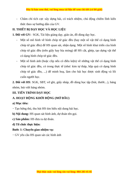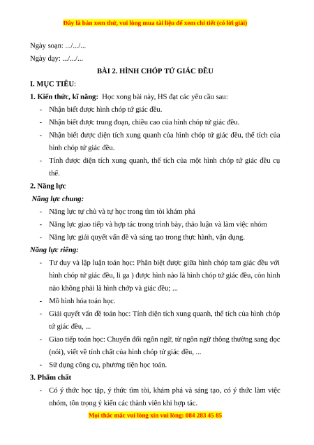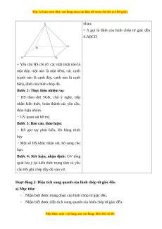 BÀI 2. HÌNH CHÓP TỨ GIÁC ĐỀU I. MỤC TIÊU: