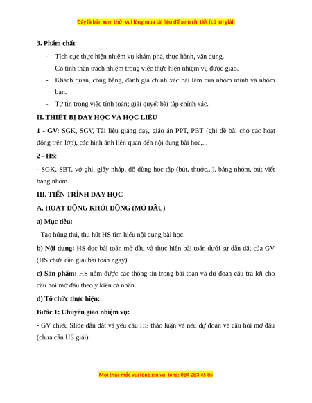 II. THIẾT BỊ DẠY HỌC VÀ HỌC LIỆU