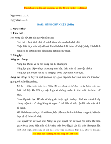 BÀI 5. HÌNH CHỮ NHẬT (2 tiết) I. MỤC TIÊU: