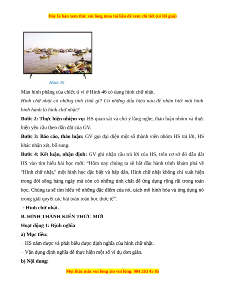 BÀI 5. HÌNH CHỮ NHẬT (2 tiết)