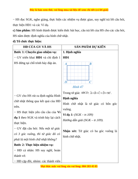 Giáo án Hình chữ nhật Toán 8 Cánh diều