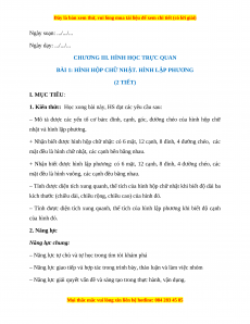 Giáo án Hình hộp chữ nhật, hình lập phương Toán 7 Cánh diều