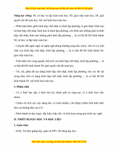 chất của hình hộp chữ nhật, hình lập phương, ... là cơ hội để HS hình thành NL giao tiếp toán học.