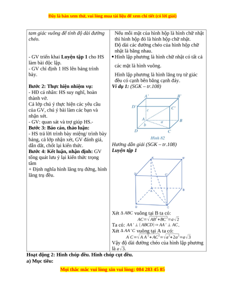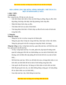 Giáo án Hình lăng trụ đứng. Hình chóp đều. Thể tích của một số hình khối Toán 11 Cánh diều