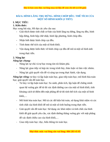 BÀI 6. HÌNH LĂNG TRỤ ĐỨNG. HÌNH CHÓP ĐỀU. THỂ TÍCH CỦA