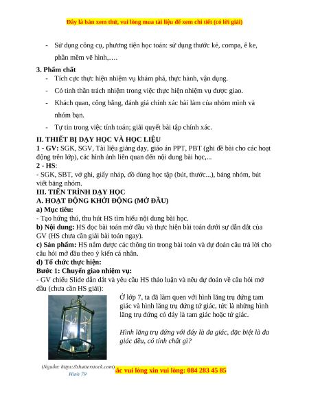- HS nhận biết được hình lăng trụ đứng, hình lăng trụ đều. b) Nội dung: