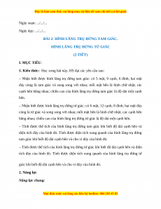 Giáo án Hình lăng trụ đứng tam giác. Hình lăng trụ đứng tứ giác Toán 7 Cánh diều