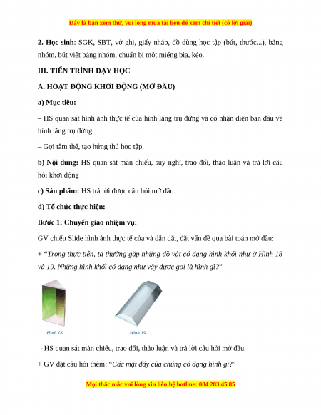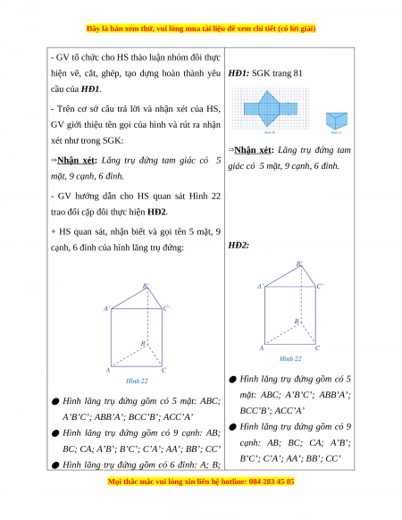 về nhận diện hình lăng trụ đứng tam giác và hình lăng trụ đứng tứ giác kết nối HS