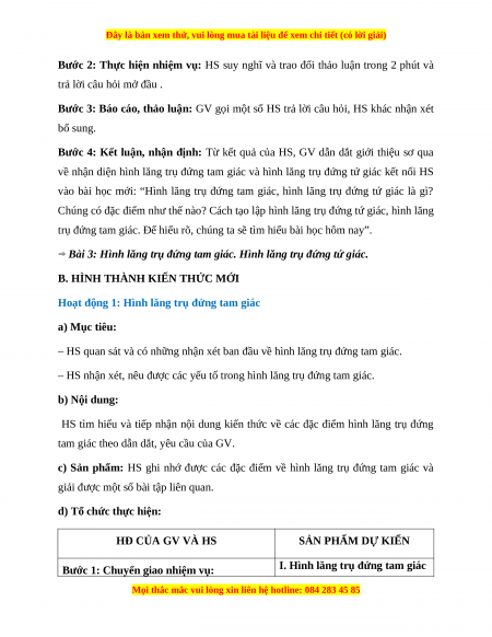 ‒ HS nhận xét, nêu được các yếu tố trong hình lăng trụ đứng tam giác. b) Nội dung: