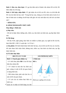 BÀI 2. HÌNH NÓN (2 TIẾT) I. MỤC TIÊU: