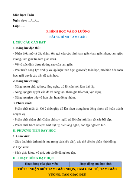 Giáo án Hình tam giác Toán lớp 5 Cánh diều