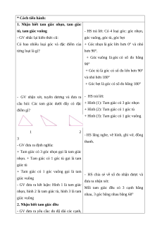 - Nắm được đặc điểm tam giác nhọn, tam giác tù, tam giác vuông, tam giác đều * Cách tiến hành: