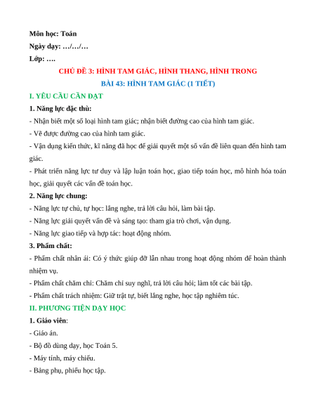 BÀI 43: HÌNH TAM GIÁC (1 TIẾT)