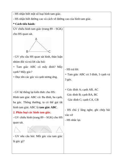 Giáo án Hình tam giác Toán lớp 5 Chân trời sáng tạo