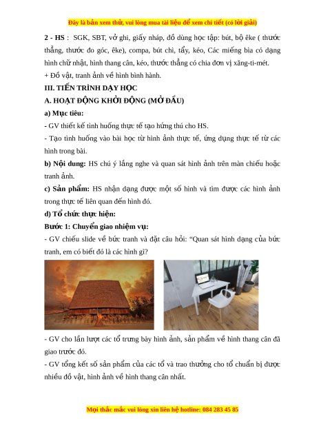 III. TIẾN TRÌNH DẠY H C Ọ A. HOẠT Đ N Ộ G KH I Ở Đ N Ộ G (M Đ Ở U Ầ ) a) M c t ụ iêu: - GV thi t ế k t ế ình hu ng t ố h c ự t t ế o h ạ ng t ứ hú cho HS. - T o ạ tình hu ng ố vào bài h c ọ từ hình nh ả th c ự t , ế ng ứ d ng ụ th c ự tế từ các hình trong bài. b) N i
