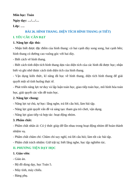 BÀI 26. HÌNH THANG. DIỆN TÍCH HÌNH THANG (4 TIẾT)