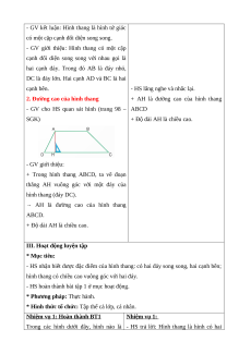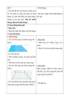 - Nhận biết được đặc điểm của hình thang. * Cách tiến hành: 1. Hình thang