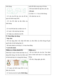 + Hình có hai cặp cạnh đối song song. - GV nêu câu hỏi: