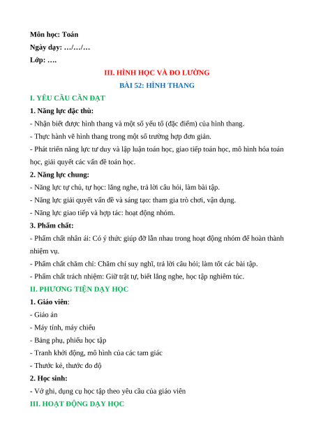 III. HÌNH HỌC VÀ ĐO LƯỜNG BÀI 52: HÌNH THANG