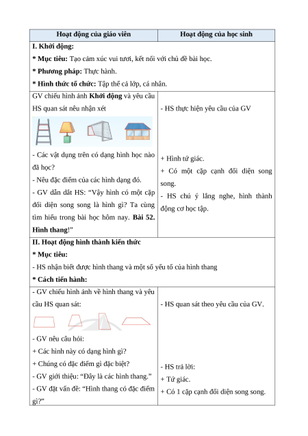 tìm hiểu trong bài học hôm nay. Bài 52. Hình thang!”
