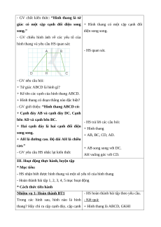 giác có một cặp cạnh đối diện song + Hình thang có một cặp cạnh đối song.” diện song song.