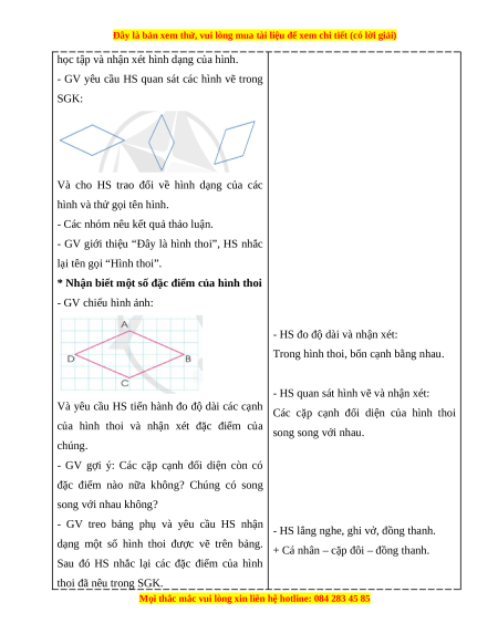 Giáo án Hình thoi Toán lớp 4 Cánh diều