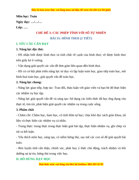 BÀI 55: HÌNH THOI (2 TIẾT)