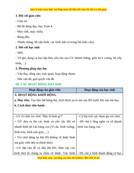III. CÁC HOẠT ĐỘNG DẠY HỌC