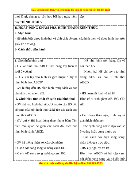 → GV chỉ tay vào hình và giới thiệu: “Đây là trong SHS và nói: Hình thoi hình bình thoi ABCD” ABCD.